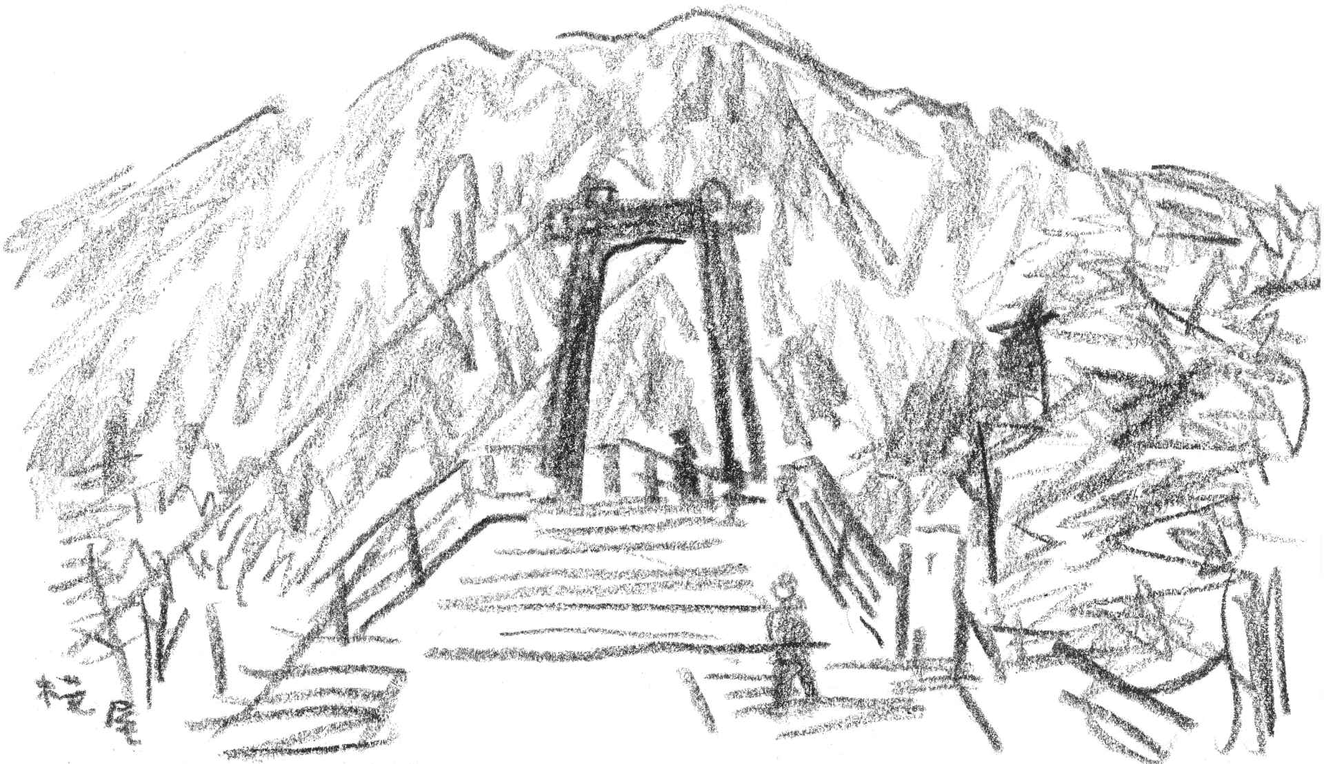トレッキングシューズ(又は登山靴)、雨具(ゴア)、サングラス、日焼け止め、水筒(ペットボトル可)、行動食、薄手のダウン(フリース)、着替え、タオル、洗面用具、(ストック)